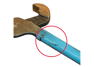 • Evidence of a “cheater bar” or unauthorized leverage tool being used